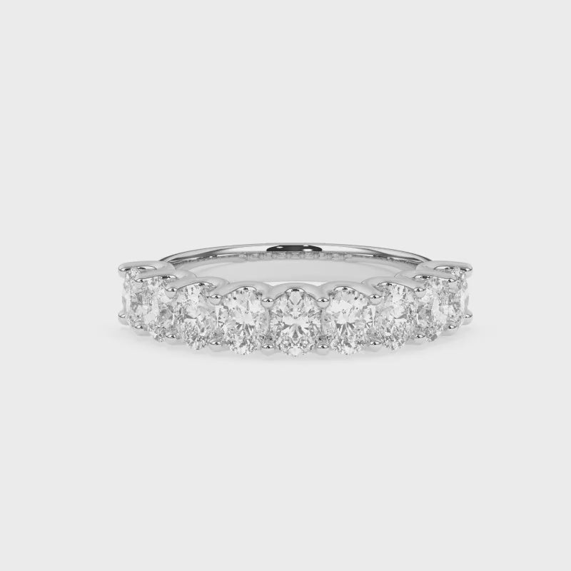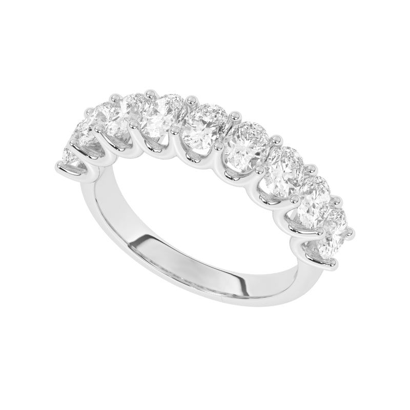 Description: Diamond Nine Stone Ring, Set with Nine Oval Cut Lab Diamonds, Set in 9ct or 18ct White Gold or Platinum