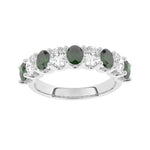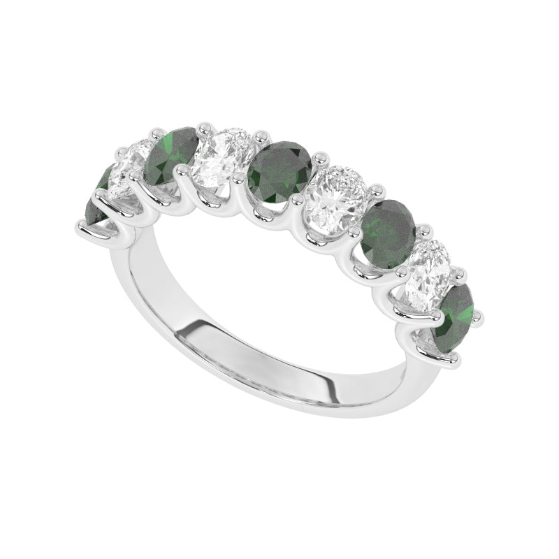 Description: Diamond & Emerald Nine Stone Ring, Set with Five Oval Lab Emeralds & Four Oval Cut Lab Diamonds, Set in 9ct or 18ct White Gold or Platinum