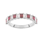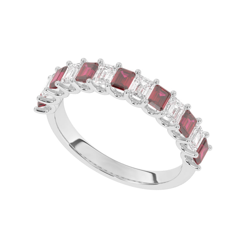 Description: Diamond & Ruby Thirteen Stone Ring, Set with Seven Emerald Cut Lab Rubies & Six Emerald Cut Lab Diamonds, Set in 9ct or 18ct White Gold or Platinum