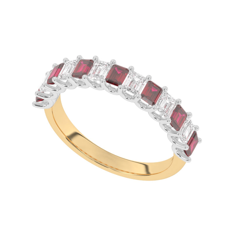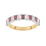 Description: Diamond & Ruby Thirteen Stone Ring, Set with Seven Emerald Cut Lab Rubies & Six Emerald Cut Lab Diamonds, Set in 9ct or 18ct Yellow Gold