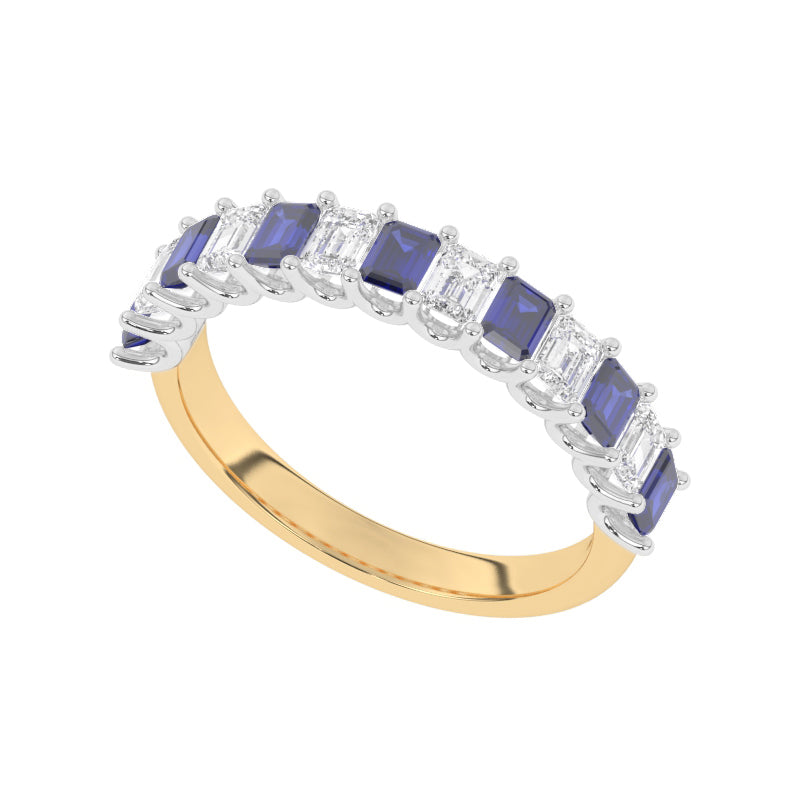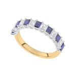 Description: Diamond & Sapphire Thirteen Stone Ring, Set with Seven Emerald Cut Lab Sapphires & Six Emerald Cut Lab Diamonds, Set in 9ct or 18ct Yellow Gold