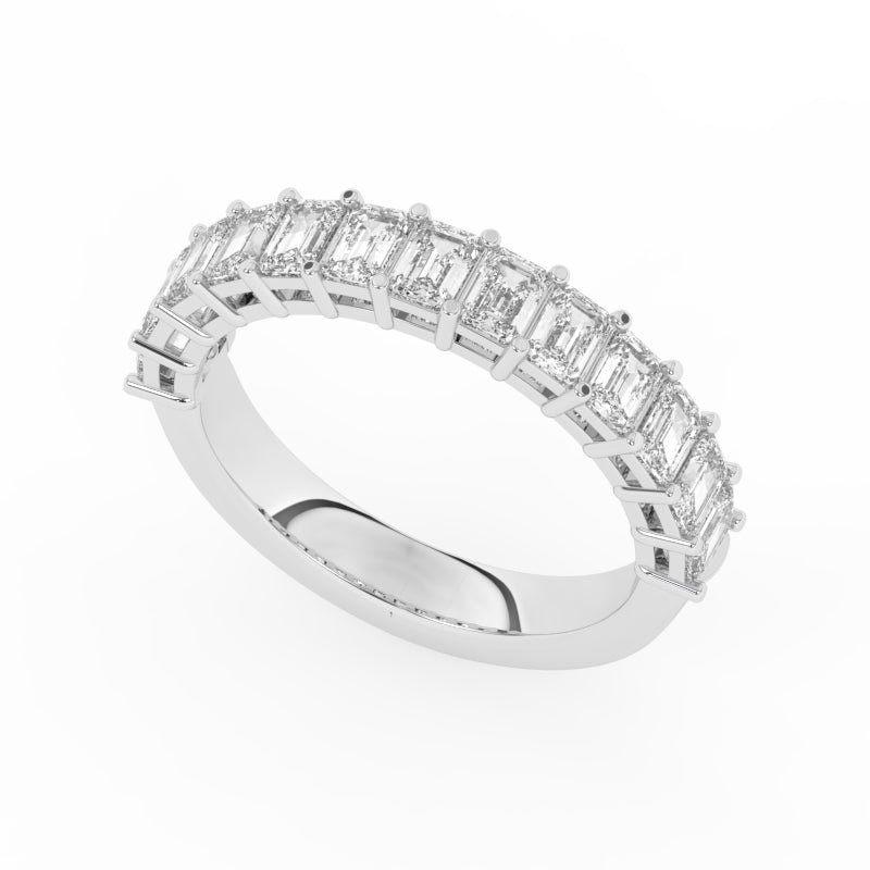 Description: Diamond Eleven Stone Half Eternity Ring, Set with Eleven Emerald Cut Lab Diamonds, Set in 9ct or 18ct White Gold or Platinum