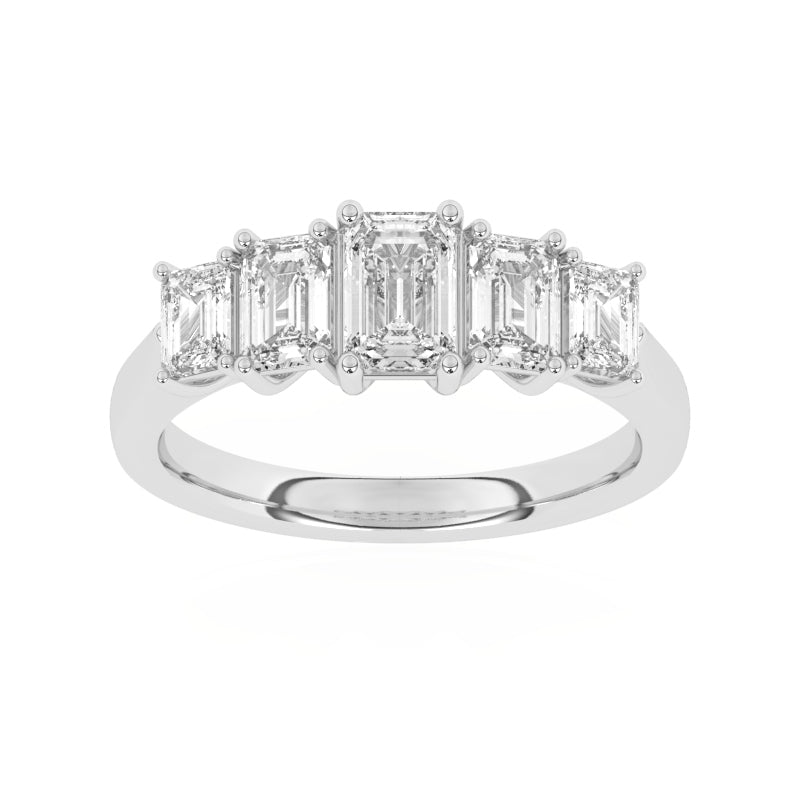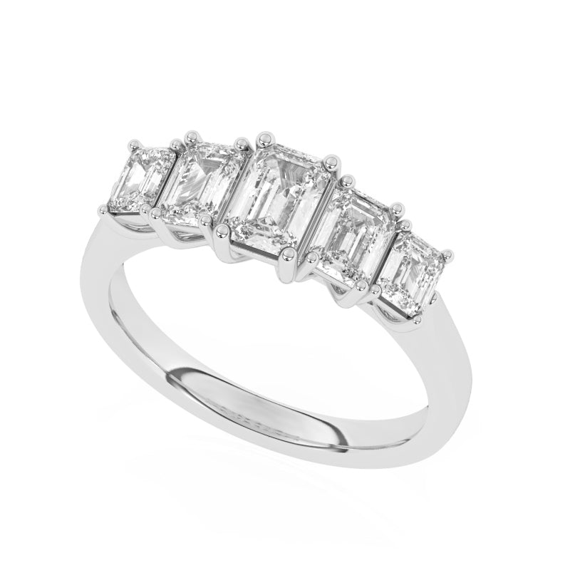 Description: Diamond Five Stone Ring, Set with Lab Grown Emerald Cut Diamonds, Set in 9ct or 18ct White Gold or Platinum