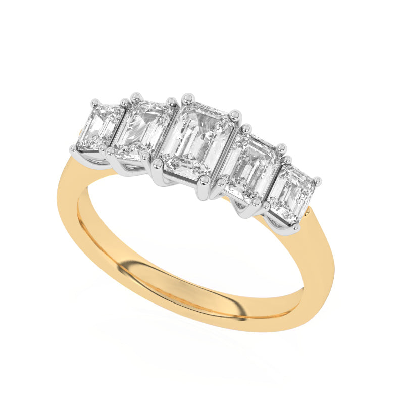 Description: Diamond Five Stone Ring, Set with Lab Grown Emerald Cut Diamonds, Set in 9ct or 18ct Yellow Gold