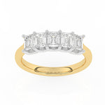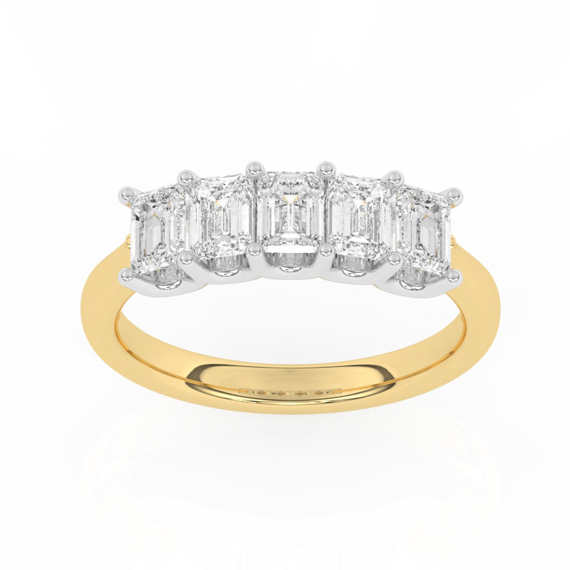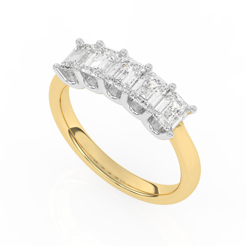 Description: Diamond Five Stone Ring, Set with Lab Grown Emerald Cut Diamonds, Set in 9ct or 18ct Yellow Gold