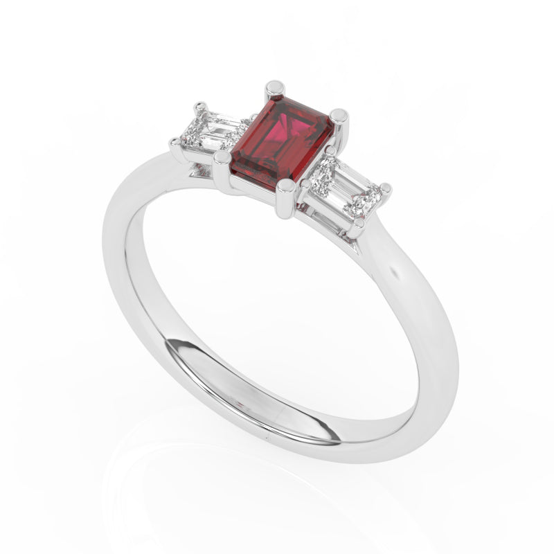 R-82420-RU-W Lab Diamond & Ruby Three Stone Ring