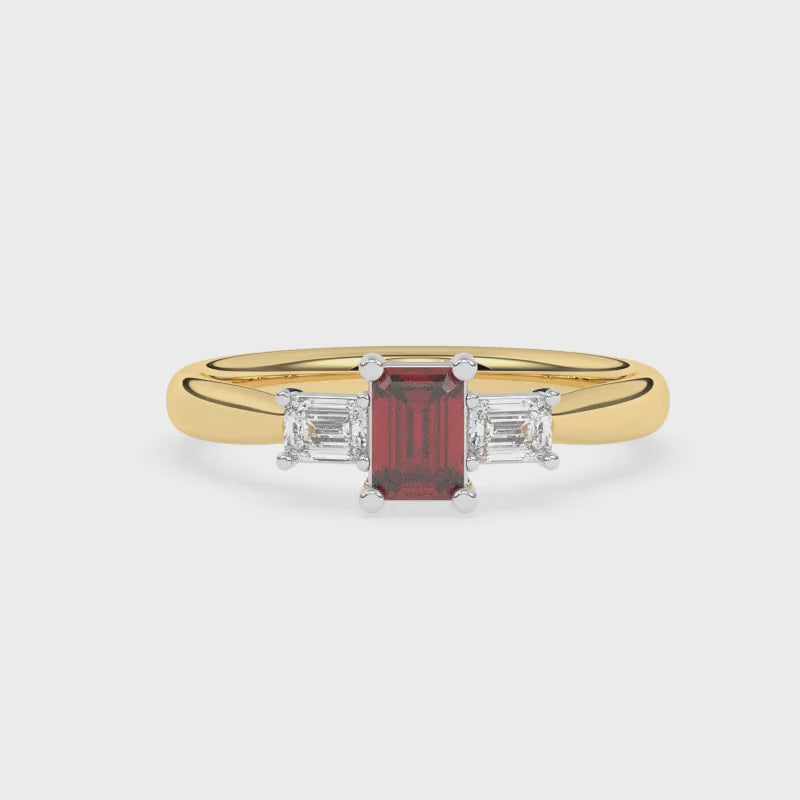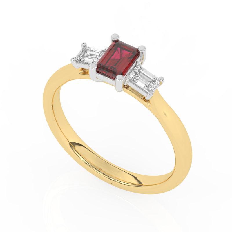 R-82420-RU-Y Lab Diamond & Ruby Three Stone Ring
