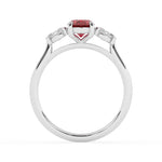 R-82512-RU-W Lab Diamond & Ruby Three Stone Ring