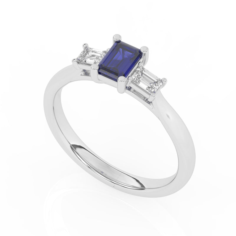 R-82420-SA-W Lab Diamond & Sapphire Three Stone Ring