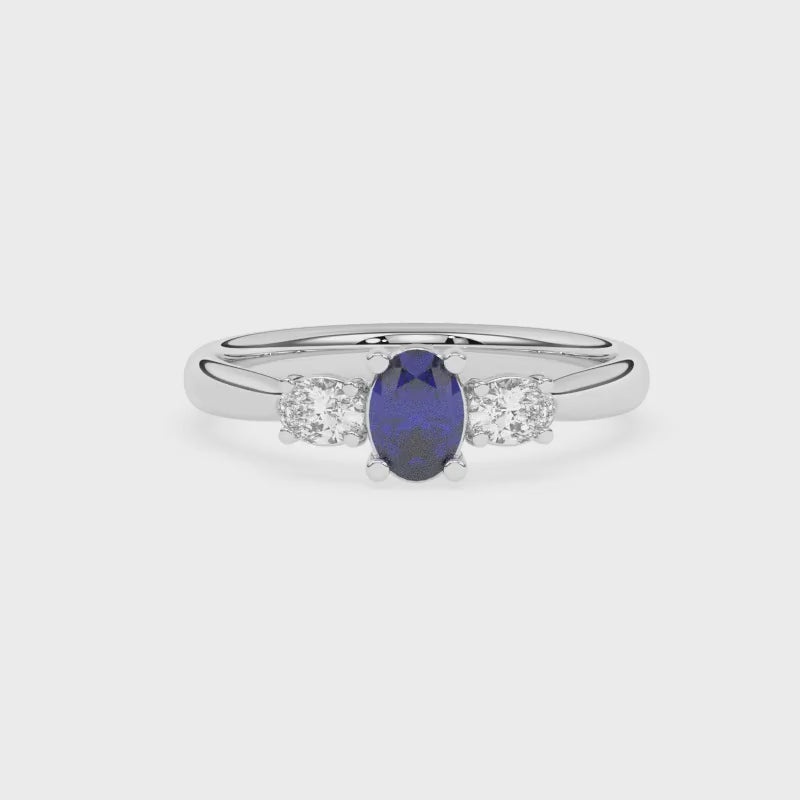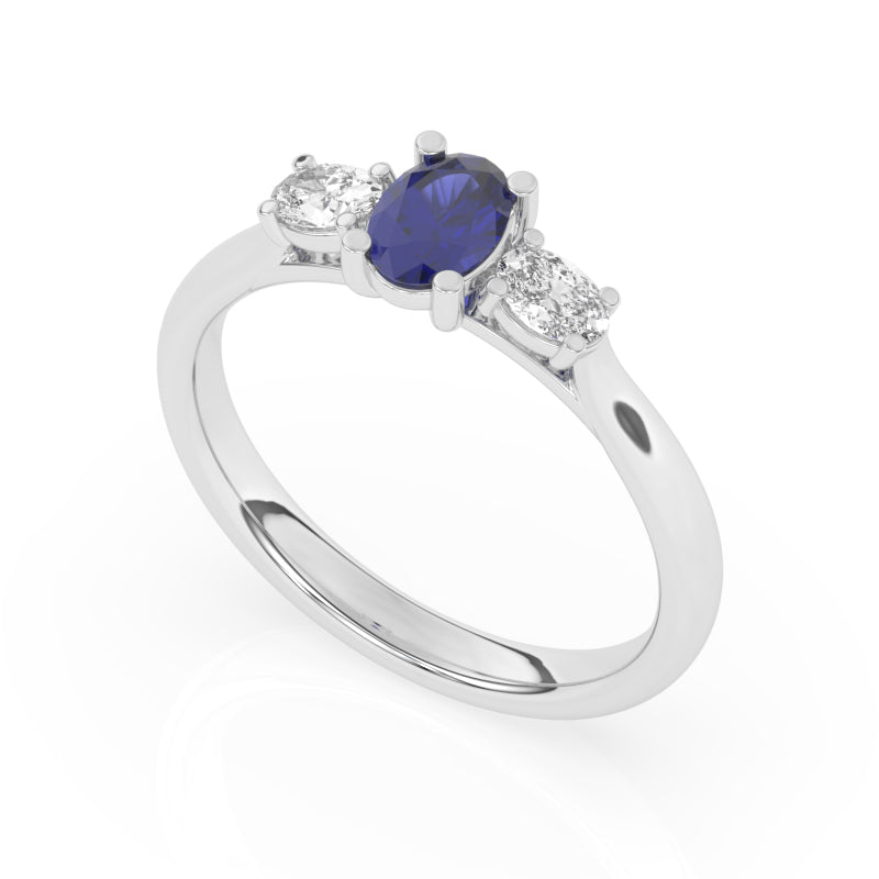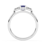 Description: Diamond Three Stone Ring, Set with Pear Cut Lab Sapphire & Two Pear Cut Lab Diamonds, Set in 9ct or 18ct White Gold or Platinum