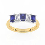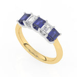 Description: Diamond & Sapphire Five Stone Ring, Set with Emerald Cut Lab Saphires & Emerald Cut Lab Diamonds, Set in 9ct or 18ct Yellow Gold