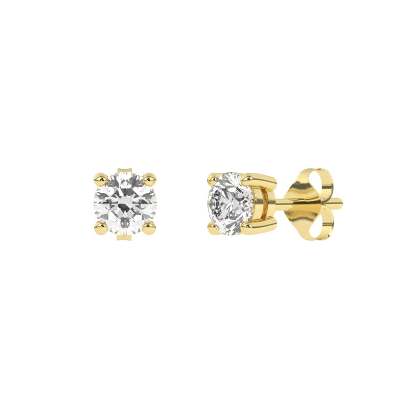 Description: Diamond Single Stone Earrings, Set with 0.50ct G-H/VS Brilliant Cut Lab Diamonds, Set in 9ct or 18ct Yellow Gold, (Verifiably EGL Report Included)