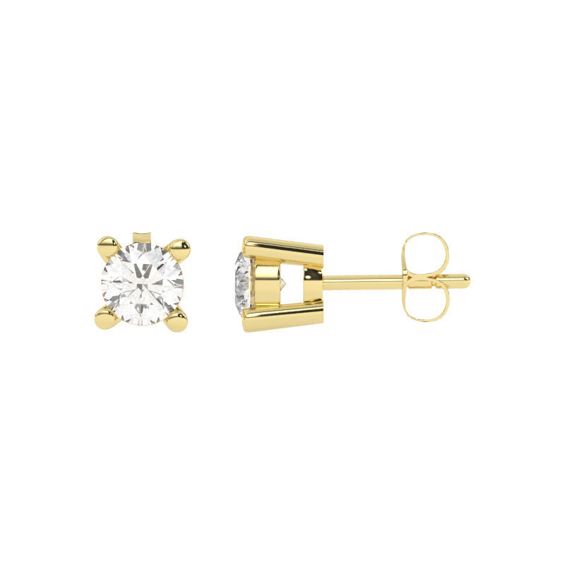 Description: Diamond Single Stone Earrings, Set with 0.75ct G-H/VS Brilliant Cut Lab Diamonds, Set in 9ct or 18ct Yellow Gold, (Verifiably EGL Report Included)