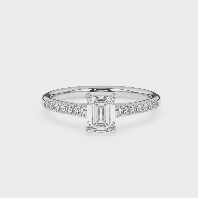 Description: Diamond Solitaire Ring, Set with a 1.00ct Emerald Cut Lab Diamond & Diamond Set Shoulders, Set in 9ct or 18ct White Gold or Platinum (IGI Report Included)