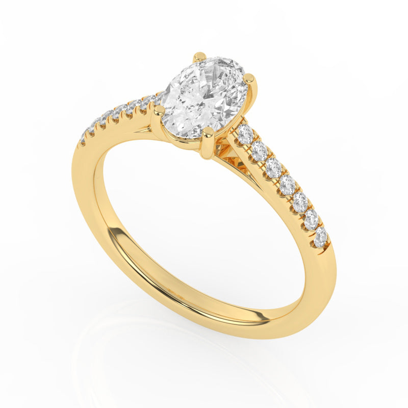 R-81503-AD-Y 1.20ct D/VS Oval Cut Lab Diamond Solitaire Ring & Diamond Set Shoulders