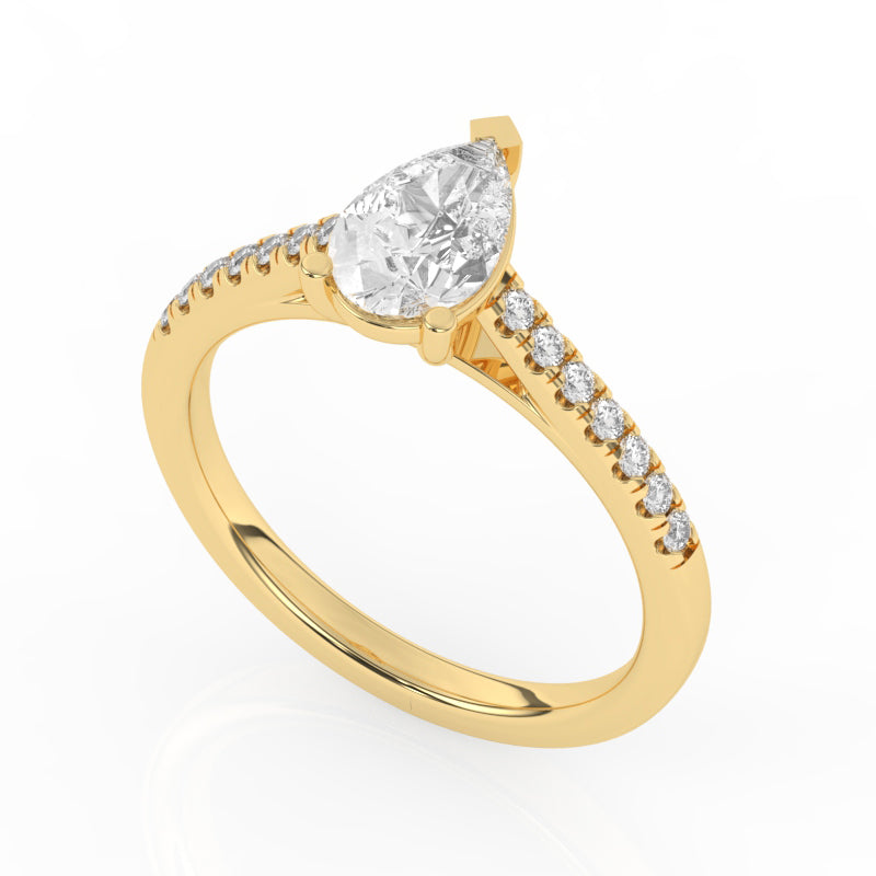 R-81504-AD-Y 1.20ct D/VS Pear Cut Lab Diamond Solitaire Ring & Diamond Set Shoulders