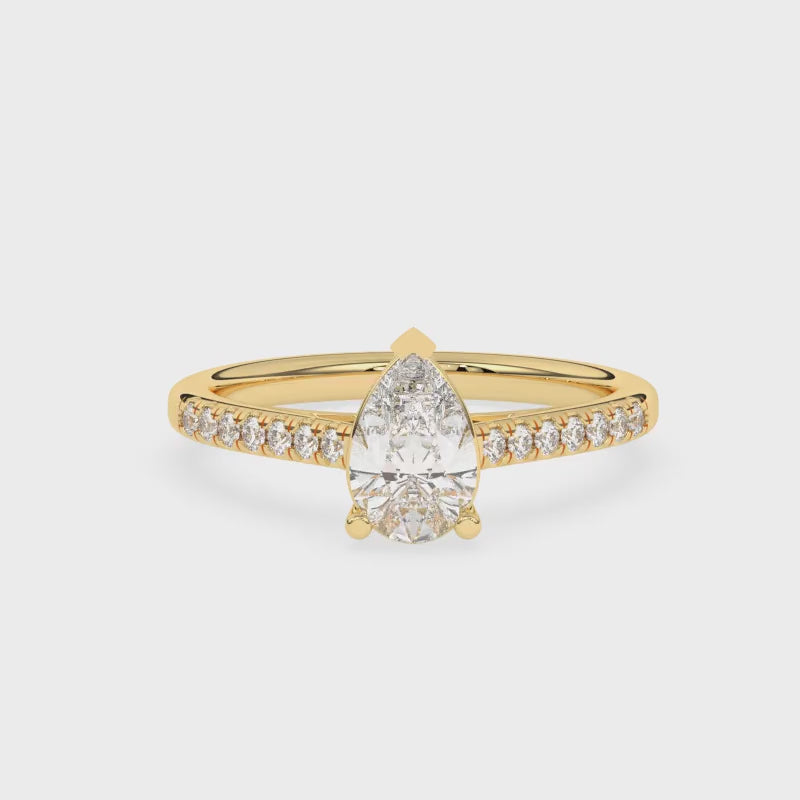 Description: Diamond Solitaire Ring, Set with a 1.00ct Pear Cut Lab Diamond & Diamond Set Shoulders, Set in 9ct or 18ct Yellow Gold