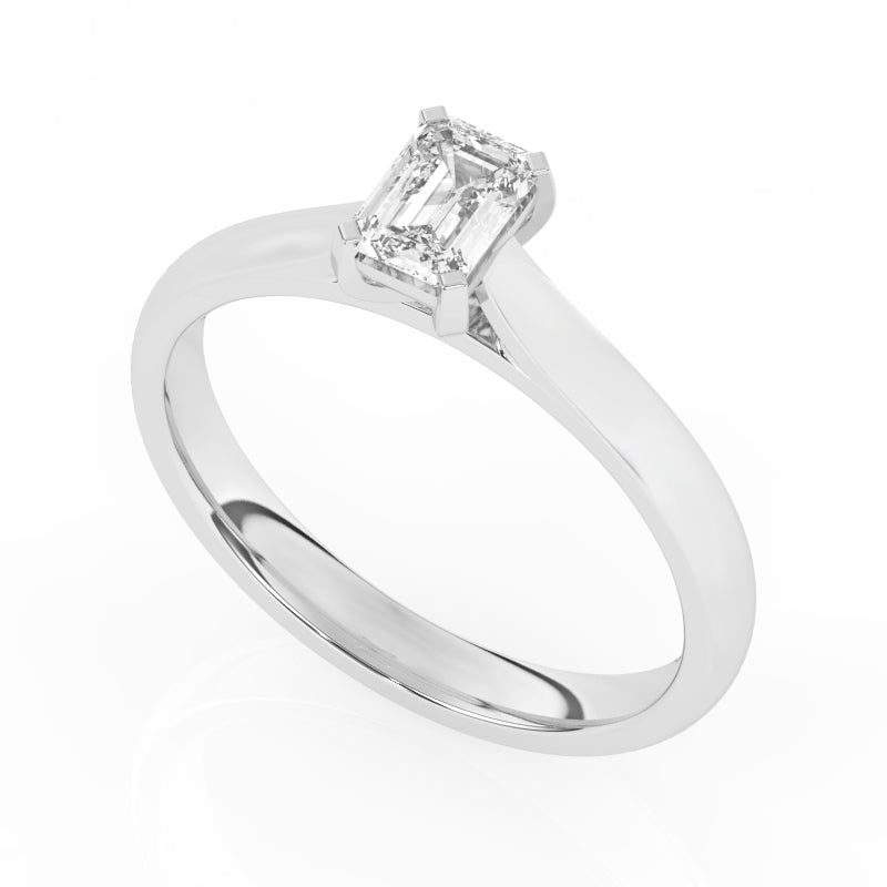 Description: Diamond Solitaire Ring, Set with a 0.50ct Emerald Cut Lab Diamond, Set in 9ct or 18ct White Gold or Platinum (Verifiably IGI Report Included)