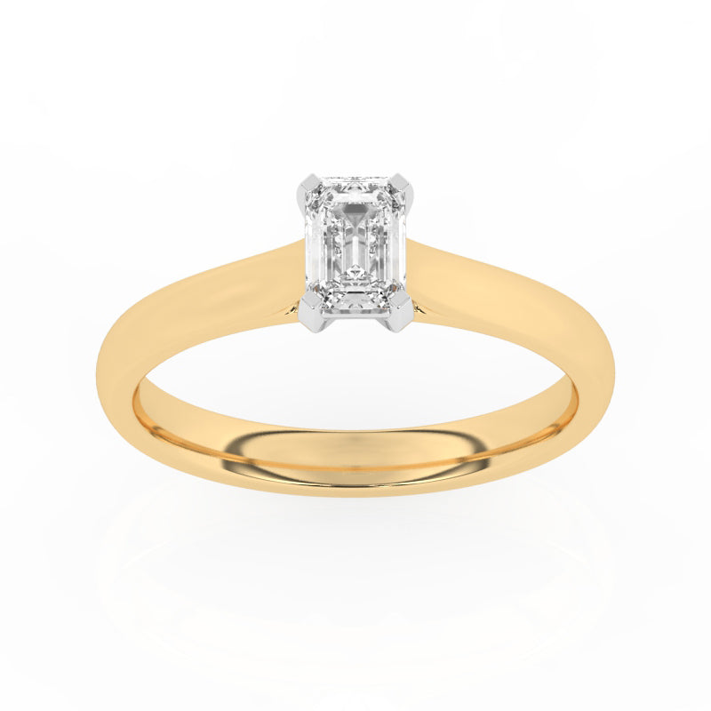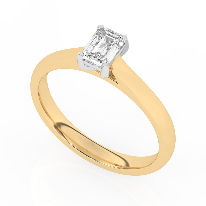 Description: Diamond Solitaire Ring, Set with a 0.50ct Emerald Cut Lab Diamond, Set in 9ct or 18ct Yellow Gold (Verifiably IGI Report Included)