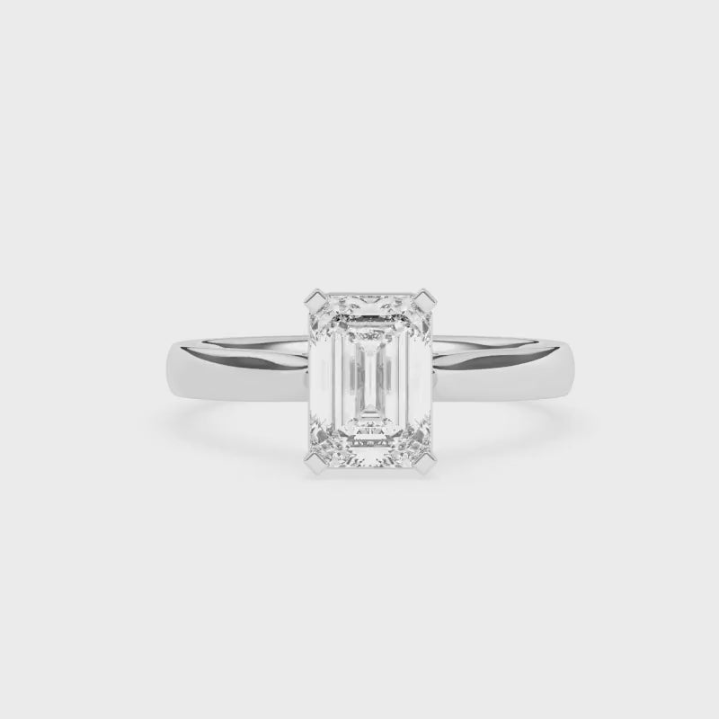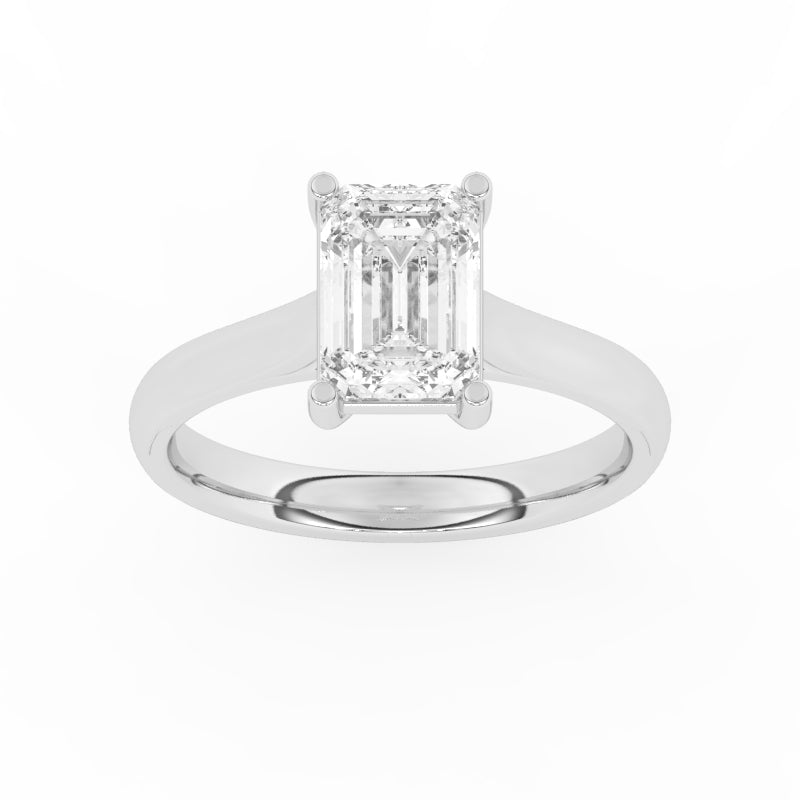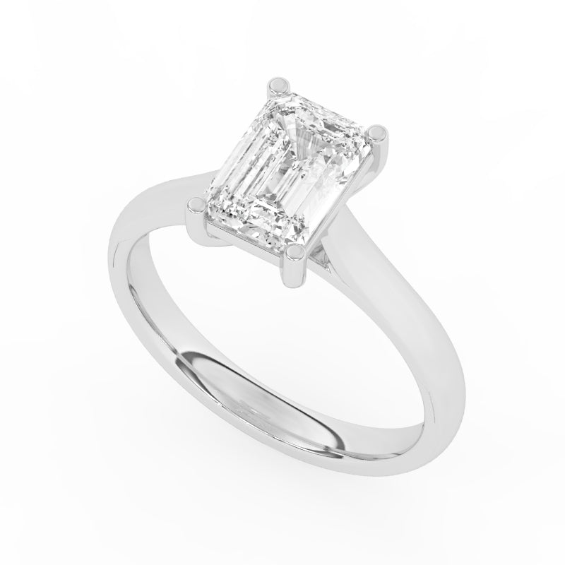 Description: Diamond Solitaire Ring, Set with a 2.00ct Emerald Cut Lab Diamond, Set in 9ct or 18ct White Gold or Platinum (Verifiably IGI Report Included)