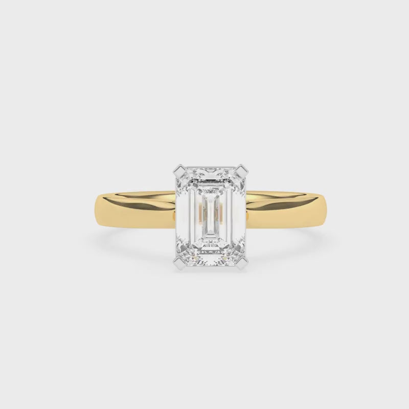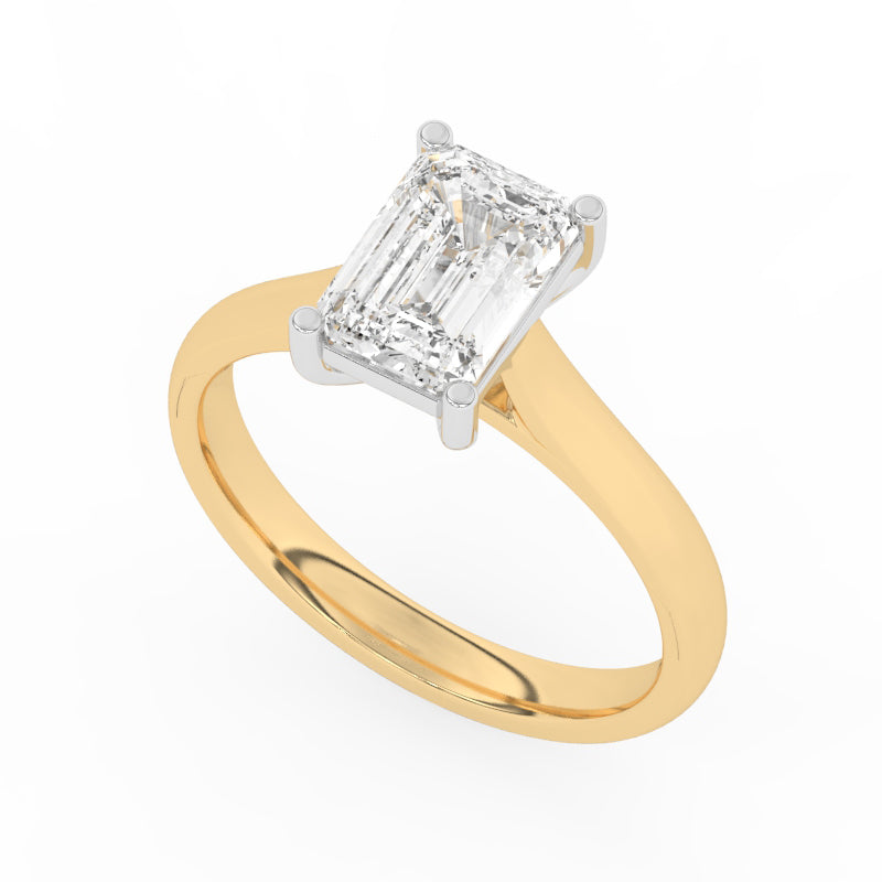 Description: Diamond Solitaire Ring, Set with a 2.00ct Emerald Cut Lab Diamond, Set in 9ct or 18ct Yellow Gold, (Verifiably IGI Report Included)