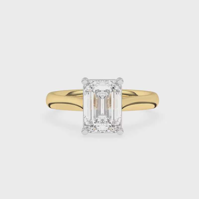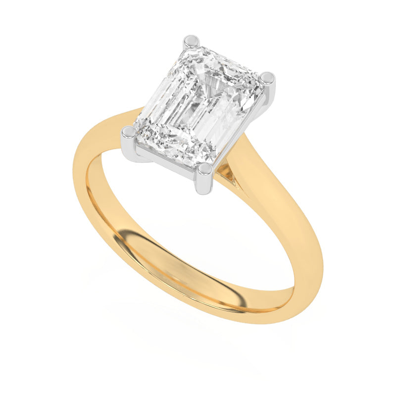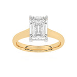 Description: Diamond Solitaire Ring, Set with a 3.00ct Emerald Cut Lab Diamond, Set in 9ct or 18ct Yellow Gold (Verifiably IGI Report Included)