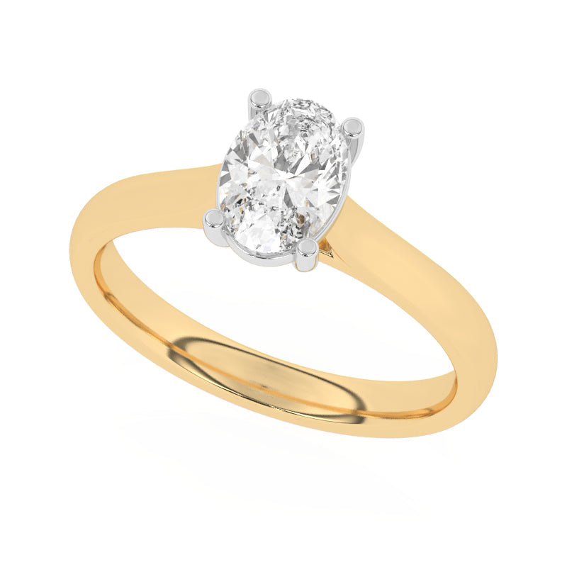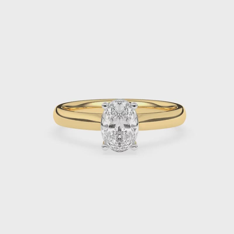 Description: Diamond Solitaire Ring, Set with a 1.00ct Oval Cut Lab Diamond, Set in 9ct or 18ct Yellow Gold (Verifiably IGI Report Included)