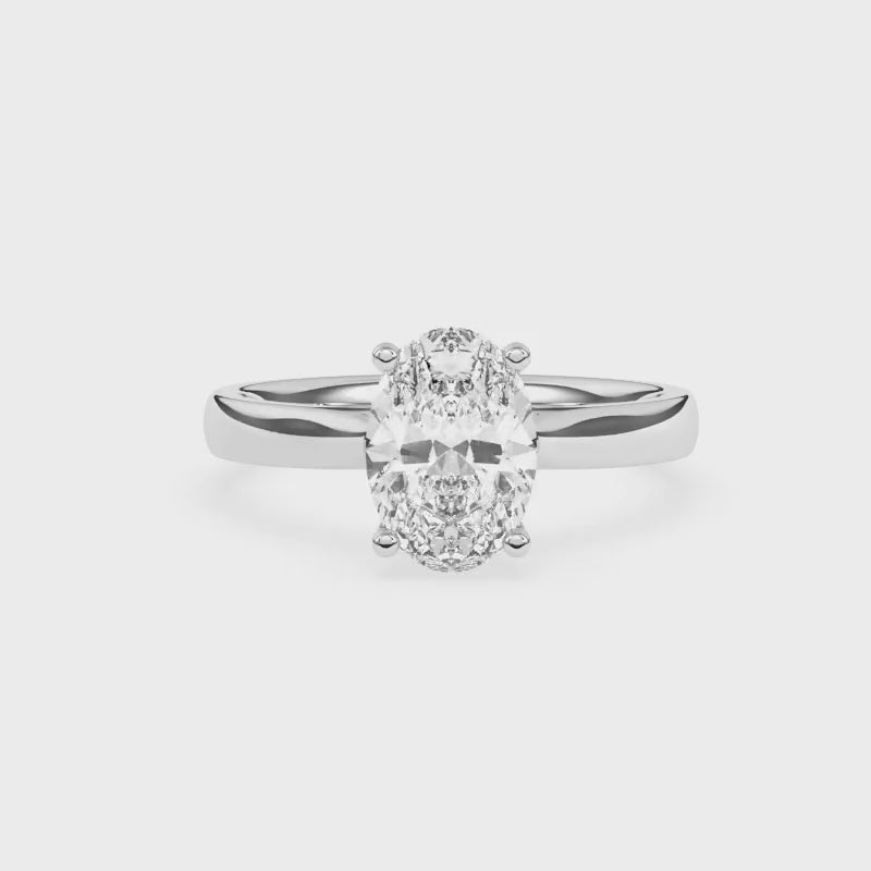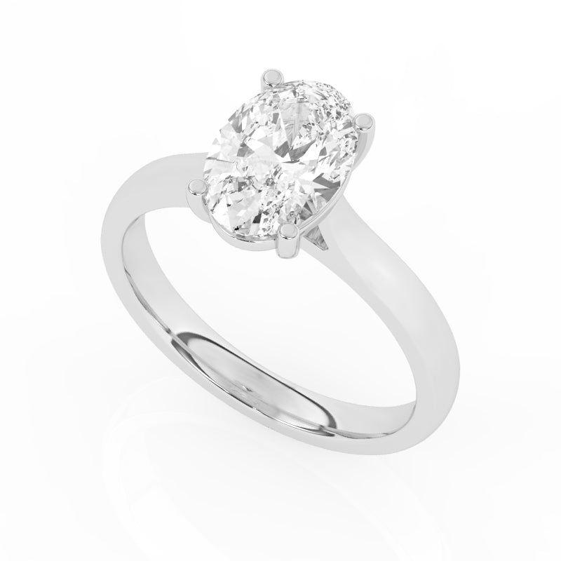 Description: Diamond Solitaire Ring, Set with a 2.00ct Oval Cut Lab Diamond, Set in 9ct or 18ct White Gold or Platinum (Verifiably IGI Report Included)