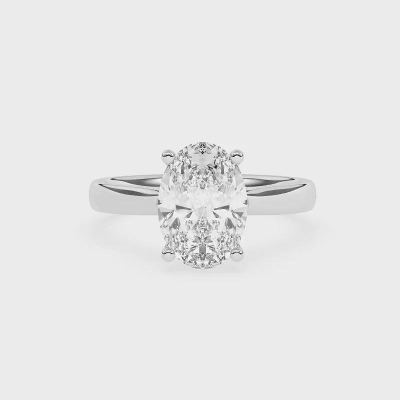 Description: Diamond Solitaire Ring, Set with a 3.00ct Oval Cut Lab Diamond, Set in 9ct or 18ct White Gold or Platinum (Verifiably IGI Report Included)