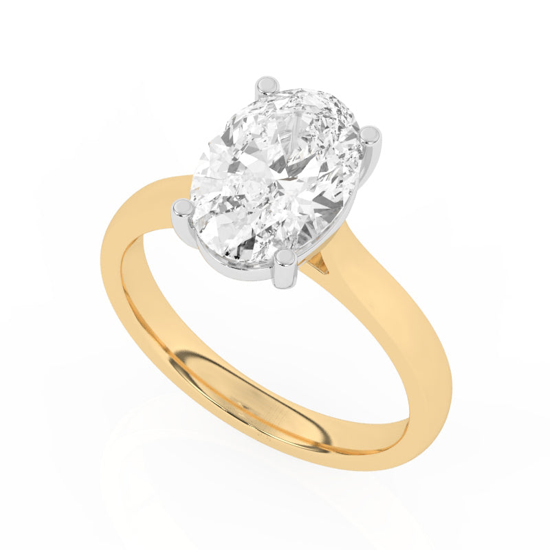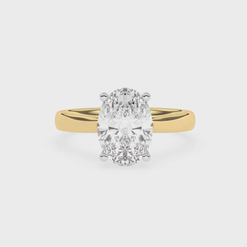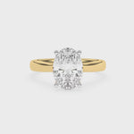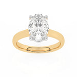 Description: Diamond Solitaire Ring, Set with a 3.00ct Oval Cut Lab Diamond, Set in 9ct or 18ct Yellow Gold (Verifiably IGI Report Included)