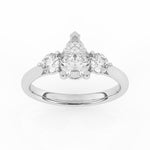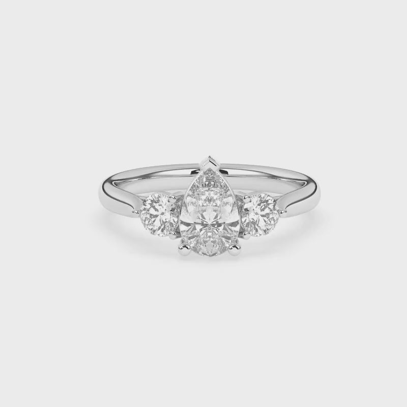Description: Diamond Three Stone Ring, Set with Pear Cut Lab Diamond & Two Brilliant Cut Lab Diamonds, Set in 9ct or 18ct White Gold or Platinum
