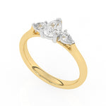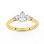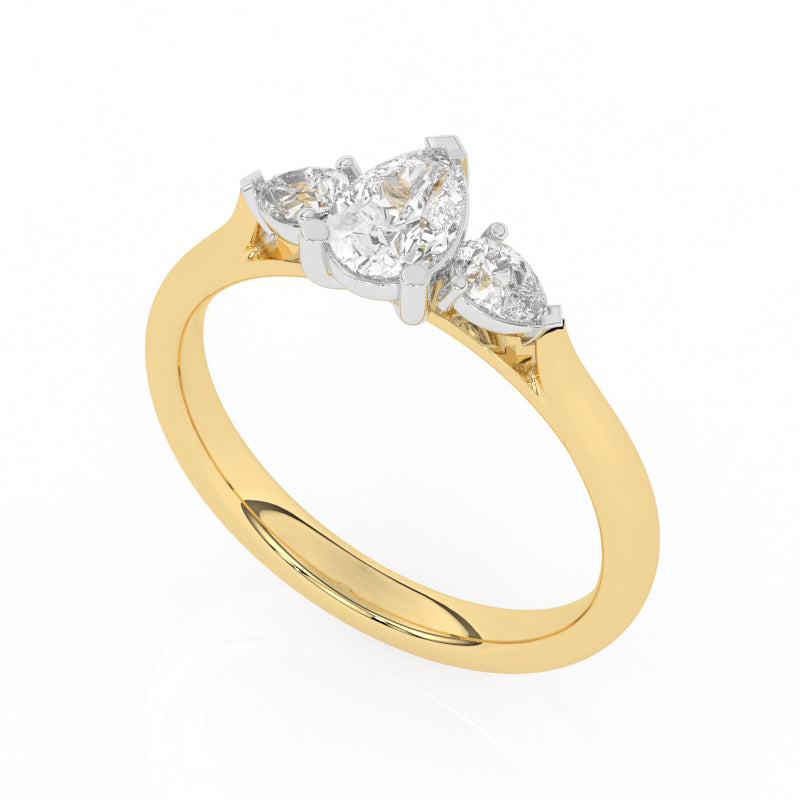 Description: Diamond Three Stone Ring, Set with Pear Cut Lab Diamond & Two Pear Cut Lab Diamonds, Set in 9ct or 18ct Yellow Gold