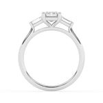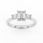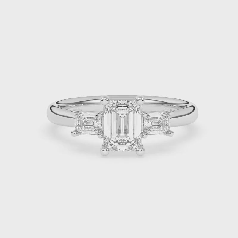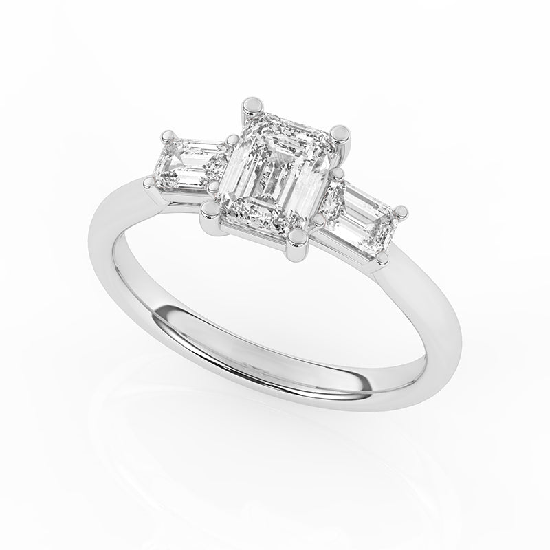 Description: Diamond Three Stone Ring, Set with Emerald Cut Lab Diamond & Two Emerald Cut Lab Diamonds, Set in 9ct or 18ct White Gold or Platinum