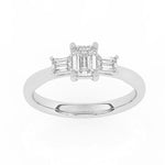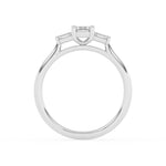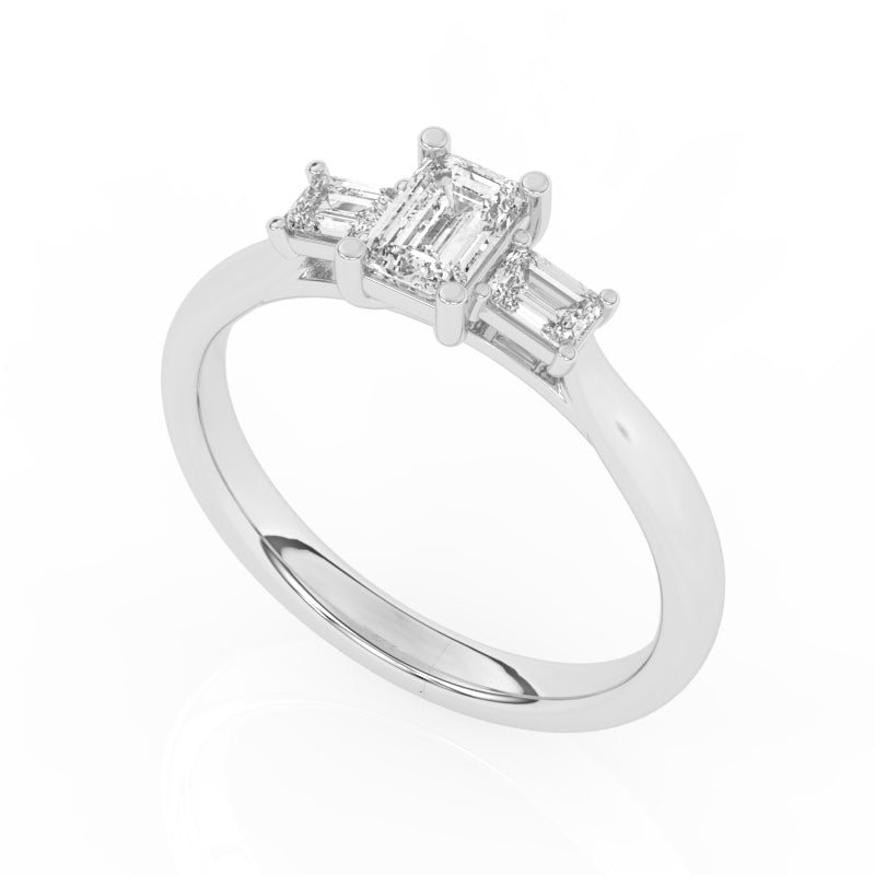 Description: Diamond Three Stone Ring, Set with Emerald Cut Lab Diamond & Two Emerald Cut Lab Diamonds, Set in 9ct or 18ct White Gold or Platinum