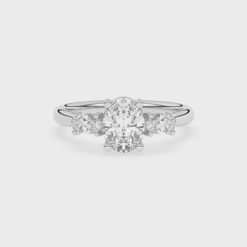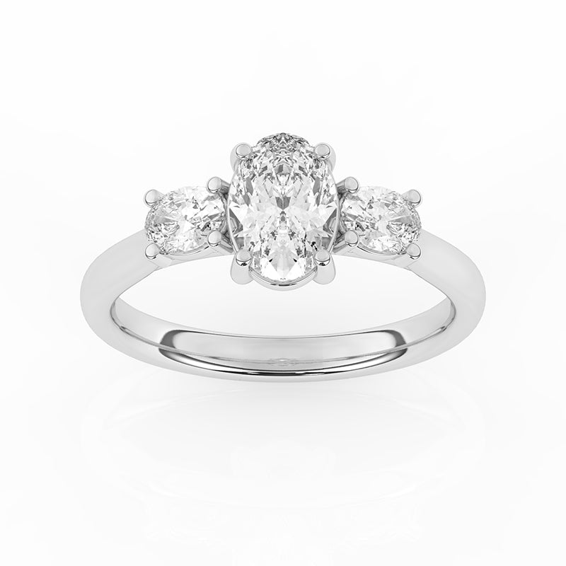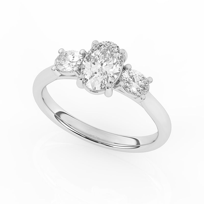 Description: Diamond Three Stone Ring, Set with Oval Cut Lab Diamond & Two Oval Cut Lab Diamonds, Set in 9ct or 18ct White Gold or Platinum
