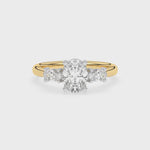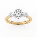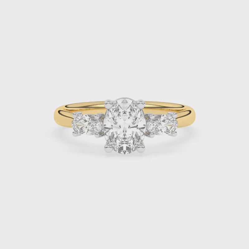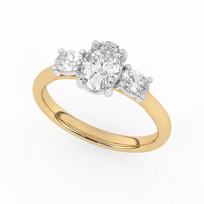 Description: Diamond Three Stone Ring, Set with Oval Cut Lab Diamond & Two Oval Cut Lab Diamonds, Set in 9ct or 18ct Yellow Gold