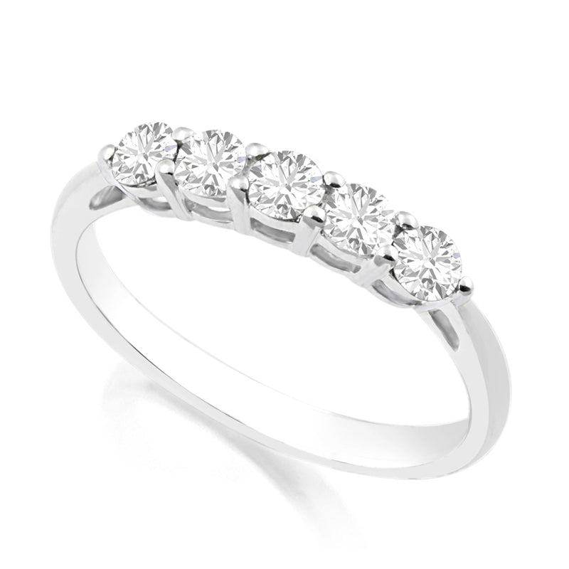 Description: Diamond Five Stone Ring, Set with Five Brilliant Cut Diamonds, Set in 9ct or 18ct White Gold