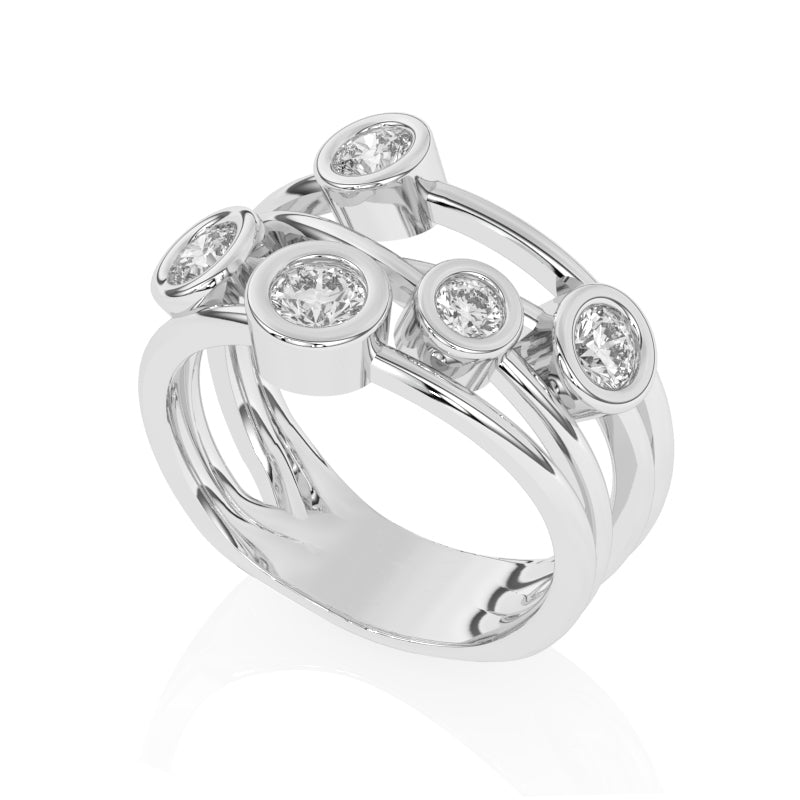 R-67501-AD-W Diamond Five Stone Bubble Ring