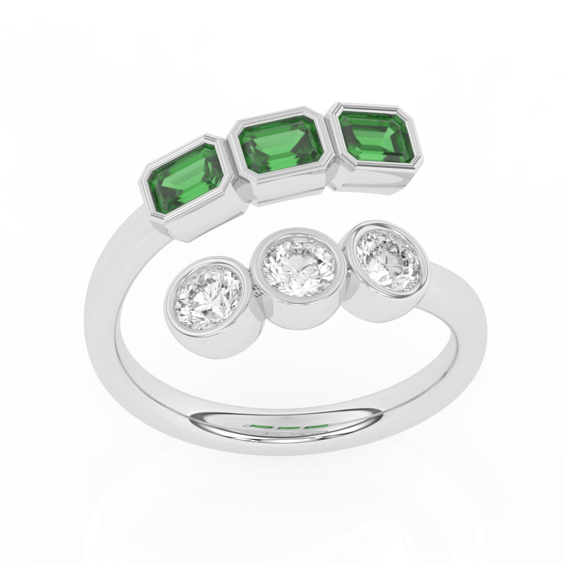 Description: Diamond Six Stone Ring, Set with Three Emerald Cut Lab Emeralds & Three Brilliant Cut Lab Diamonds, Set in 9ct or 18ct White Gold or Platinum