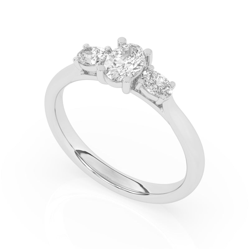 Description: Diamond Three Stone Ring, Set with Oval Cut Lab Diamond & Two Oval Cut Lab Diamonds, Set in 9ct or 18ct White Gold or Platinum