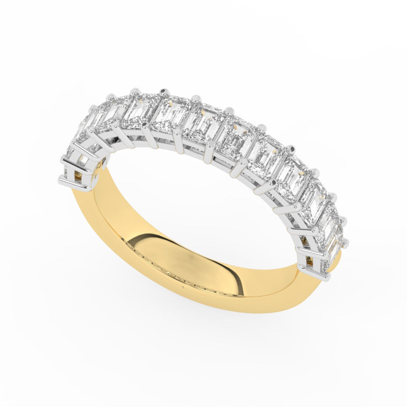 Description: Diamond Eleven Stone Half Eternity Ring, Set with Eleven Emerald Cut Lab Diamonds, Set in 9ct or 18ct Yellow Gold