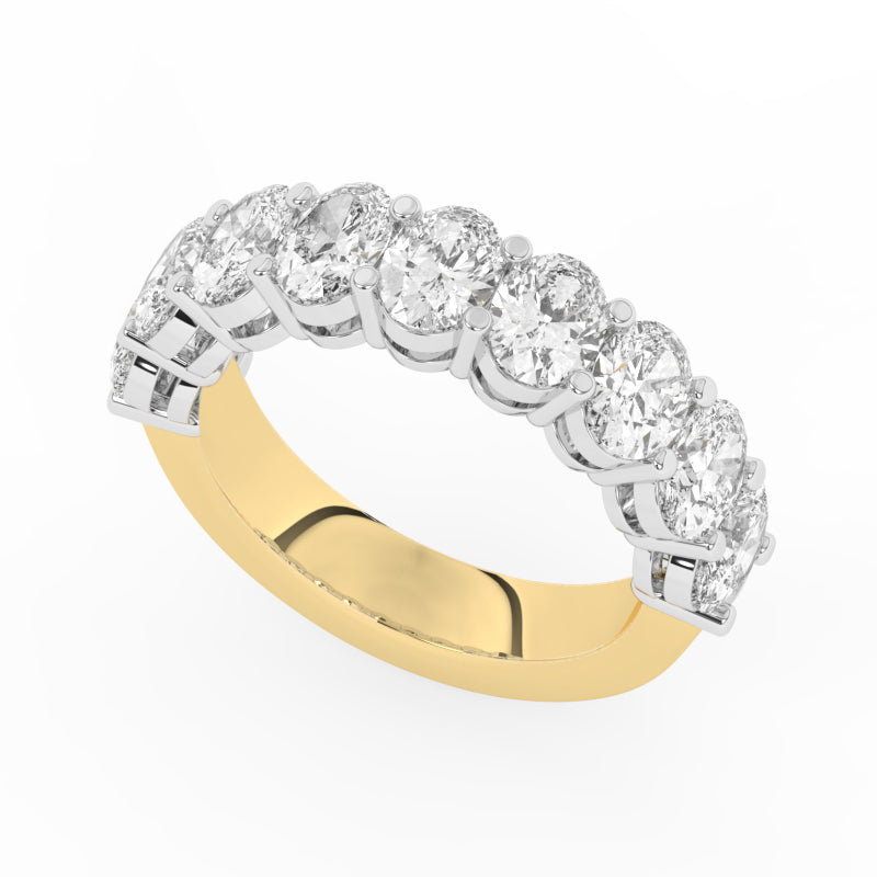 Description: Diamond Nine Stone Half Eternity Ring, Set with Nine Oval Cut Lab Diamonds, Set in 9ct or 18ct Yellow Gold